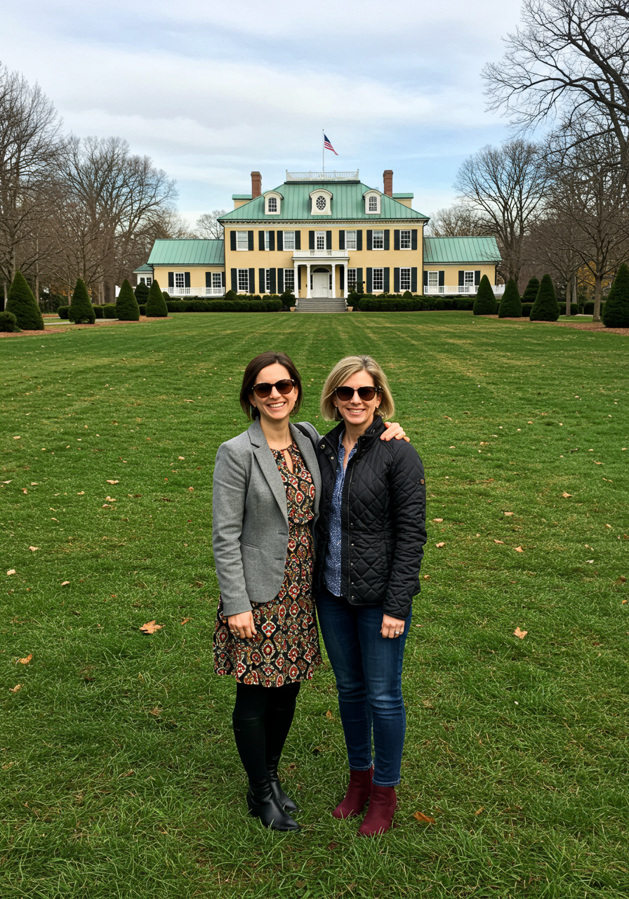 We (Eryn and Colleen) recently spent the day at Llangollen in Upperville, Virginia - which is currently listed for sale by our brokerage, Hunt Country Sotheby's International Real Estate. This historic estate is 1100 acres and is comprised of the iconic and beautiful circa 1795 Mansion. The residence is unique in that the rear of the mansion mirrors almost identically the front of the mansion - a wonderfully unusual architectural symmetry. The photos of us here were both taken in the rear of the home (and yes, we always have fun together and love what we do!)