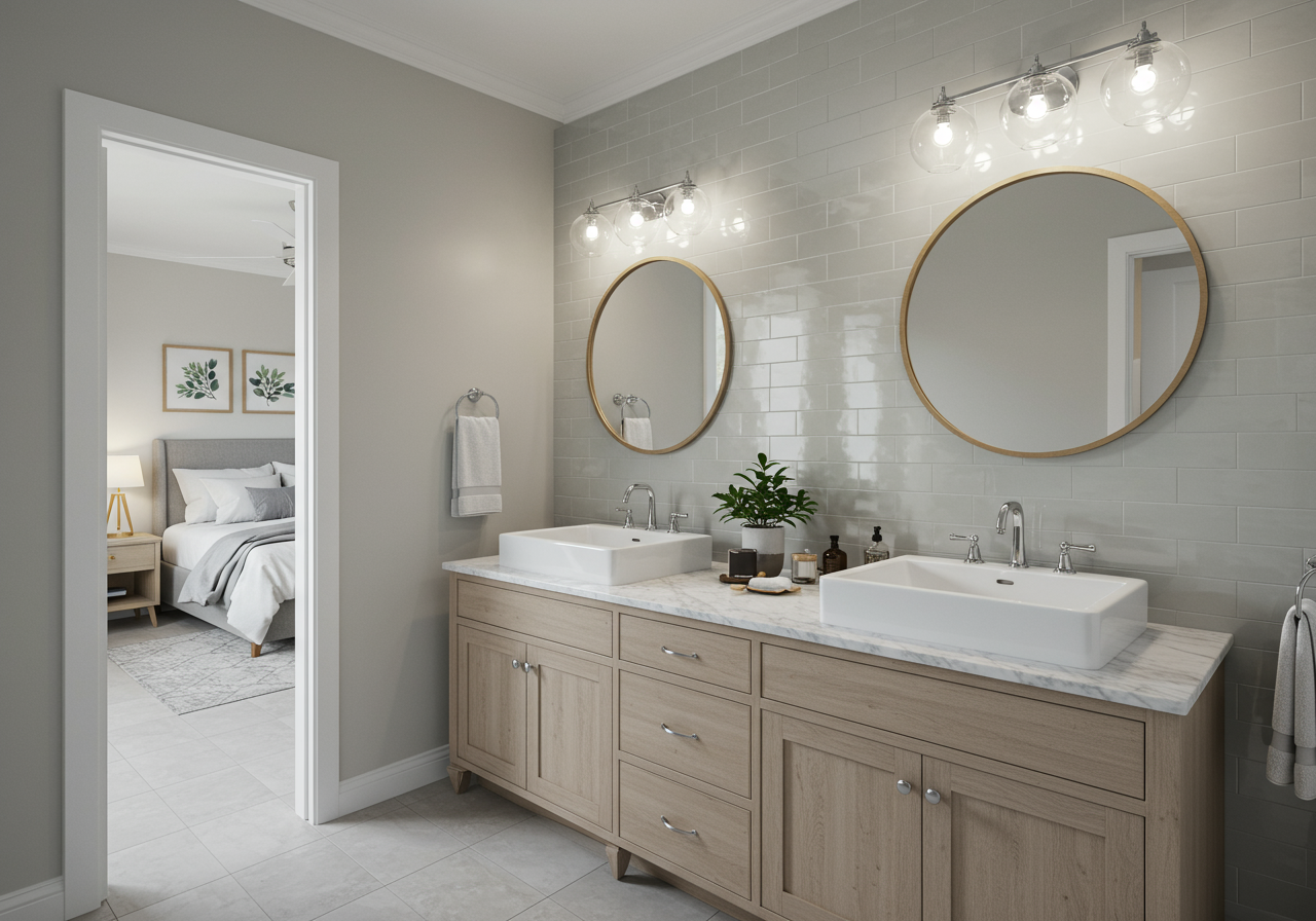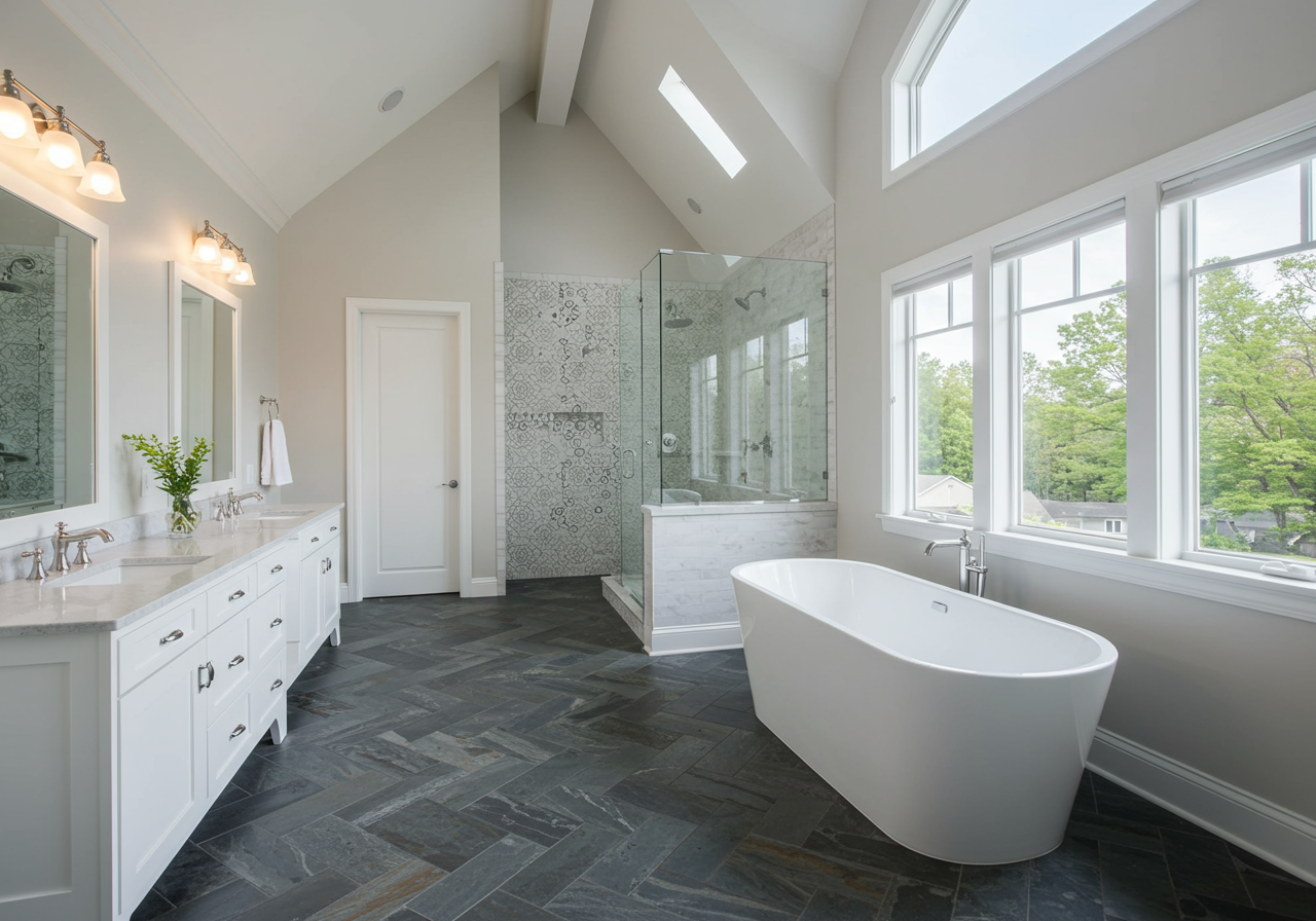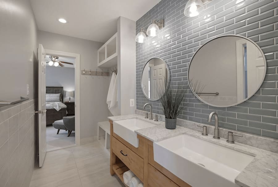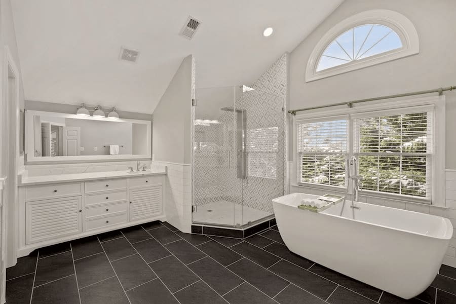 In the primary bathroom, we did not add anything but we did remove all items from the countertops, shower, and floor mats. Coco Chanel was right, "LESS IS ALWAYS MORE."