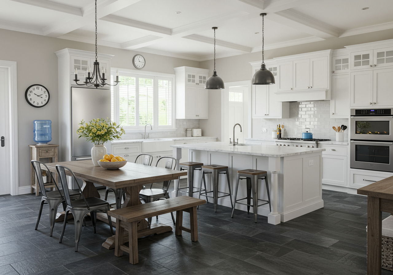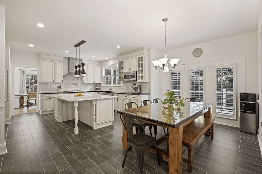 In the kitchen, we added the black metal chairs from our staging inventory and we removed almost all of the items from the countertops.